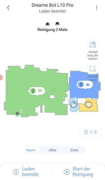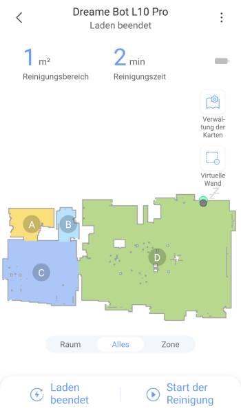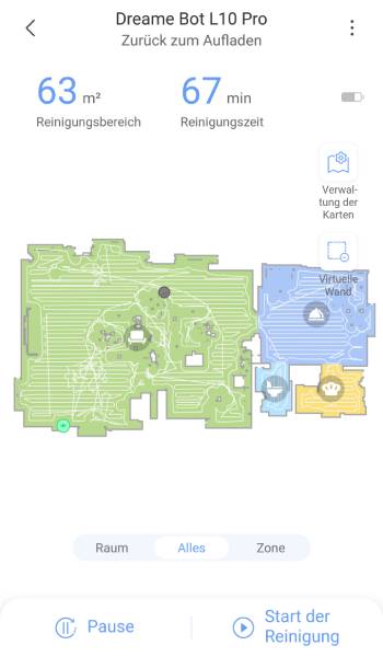 Für die Nutzung des vollständigen Funktionsumfanges ist die Xiaomi Home App fast unumgänglich. Sie ist einfach zu bedienen und verständlich aufgebaut, sodass einer problemlosen Steuerung nichts im Weg steht. In der App können bis zu drei unterschiedliche Grundrisskarten abgespeichert werden, was vor allem bei mehreren Stockwerken von Vorteil ist.