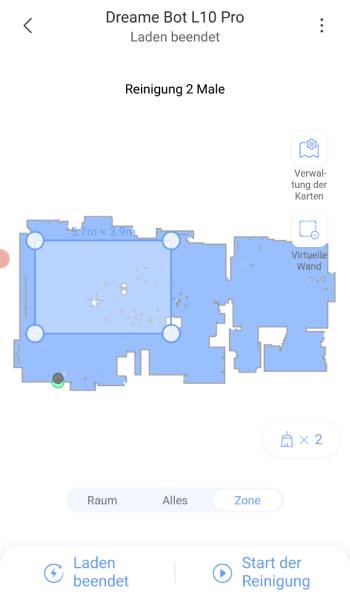 Der Dreame L10 Pro Saug-Wisch-Roboter ist mit doppelten 3D LiDAR-Sensoren ausgestattet, die es ihm ermöglichen seine Umgebung in einem Radius von 8 m abzutasten, abzuspeichern und auf Grund dessen eine entsprechende Grundrisskarte in der App zu erstellen. Dafür ist es notwendig von der Ladestation aus eine Reinigung zu starten und alle Türen zu öffnen, sodass das Umfeld erkundet werden kann.