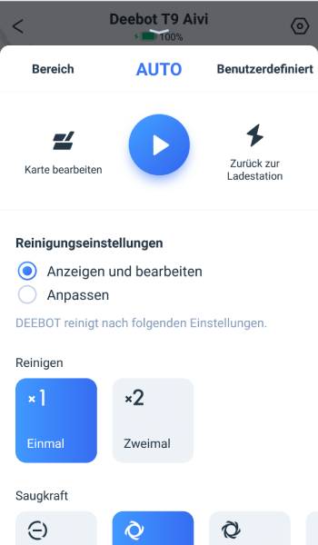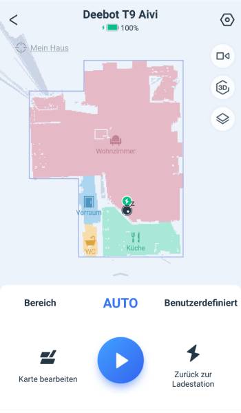 Wie die meisten Saugroboter am jetzigen Markt besitzt auch der Ecovacs Deebot T9 AIVI eine virtuelle Kartenerstellung. Mit einer solchen Erstellung sind einige Reinigungsmodi und Features verfügbar, wie zum Beispiel eine Räumliche Trennung oder eine selbst festgelegte Reihenfolge der zu reinigenden Räume. Zusätzlich lässt sich der Roboter hier in Echtzeit verfolgen und durch Einblick in die Kamera kann man so das Zuhause überwachen.