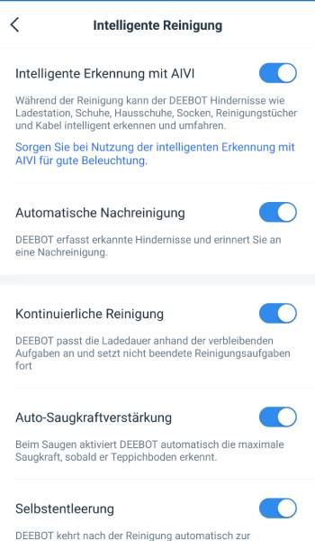 Nun muss der Deebot T9 AIVI sein Können auf unserem Hartboden unter Beweis stellen. Hierfür haben wir die doppelte Reinigung aktiviert und seine Saugstufe auf das Maximum gestellt.