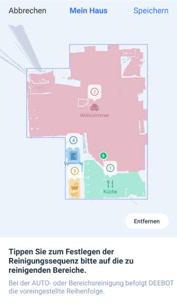 Sobald eine Karte von den Räumlichkeiten erstellt wurde, ist es möglich verschiedene Sperrzonen zu errichten. Mit Hilfe dieser Sperrzonen verwehrt man dem Roboter bestimmte Bereiche.
