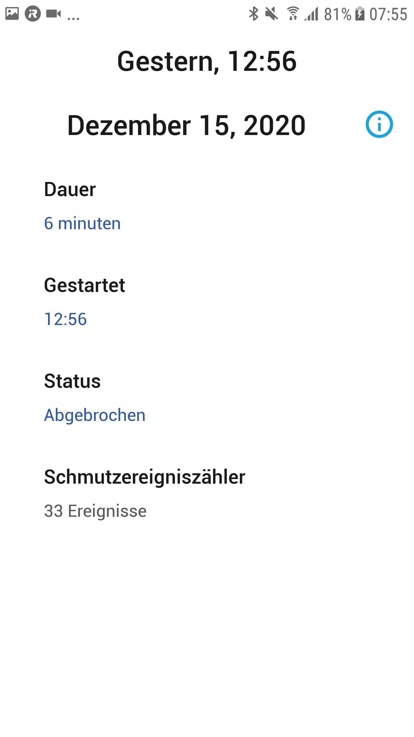 Bedauerlicherweise hat der Roboter nicht sehr viel Zeit investiert, nach nur 17 Minuten hat er die Aufgabe abgebrochen und sich nicht mehr von der Stelle bewegt. Bei einem guten Endergebnis würden wir darüber wegsehen, leider ist dem aber nicht so. In unserer gesamten Testräumlichkeit sind immer wieder Sägespäne zu finden, die wir im Endeffekt selbst beseitigen konnten. Außerdem ist er auch 3,5 Minuten unter einem Stuhl festgesessen, sodass sich die generelle Saugzeit nochmals verkürzt. Eine durchaus bessere Leistung hätte der Roboter durch längeres Saugen erreicht – Schade!