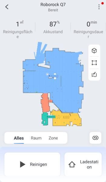 Sobald der Roboter aktiviert wurde, kann man mit der Kartenerstellung beginnen. Für alle ungeduldigen unter uns: Roborock hat sich hier um eine schnelle Kartierung gekümmert. Der Q7 kennt innerhalb weniger Minuten die Grundrisse der Räumlichkeiten und kann sofort seine Reinigung danach planen und anpassen.