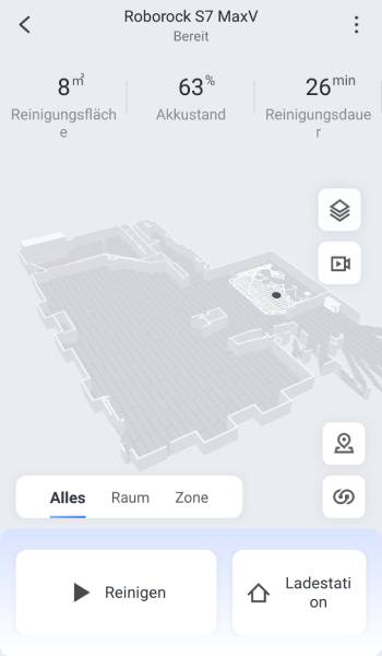 Mit der App lassen sich bis zu fünf Karten erstellen und speichern – das hat den Vorteil, dass der Roboter auch in Haushalten mit mehreren Etagen einsetzbar ist und er sich in jedem Stockwerk sofort zurechtfindet. Neben der standardisierten 2D-Kartenspeicherung gibt es beim S7 MaxV auch eine 3D-Ansicht, diese hat jedoch keinen besonderen Nutzen – hier geht es lediglich um die persönliche Vorliebe. IPhone-Besitzer können sich über eine weitere Kartenansicht namens Matrix freuen.