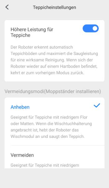 Soll ein Teppich jedoch komplett gemieden werden, so das in der App einstellbar – der Roborock befährt eine solche Oberfläche dann nicht.