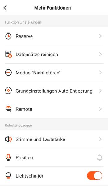 Die meisten Aktionen lassen sich nur mit Hilfe der App ausführen, will man also alle Funktionen zur Gänze nutzen, bleibt einem die App nicht erspart. Mit einer erstellten Karte kommen viele Einstellungen zum Vorschein, wie zum Beispiel die Bereichsreinigung oder Raumeinteilung.