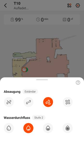 Für diesen Testdurchlauf haben wir die doppelte Reinigung in der App aktiviert und die Saugstärke auf das Maximum erhöht, sodass der Roboter das bestmögliche Ergebnis erzielen kann.