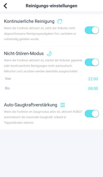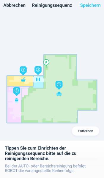 Mit einer Kartierung können weitere Features des Roboters genutzt werden, wie zum Beispiel die Sperrzonenerstellung oder die Bereichsreinigung. Der Grundriss des Wohnbereiches wird mit einer 2D-Karte dargestellt, welche jedoch nicht großartig detailliert ausfällt. Die Karte kann bis auf die Namensgebung der verschiedenen Zimmer auch nicht verändert werden – die bereits eingezeichnete Raumteilung ist also fix festgelegt. Ein weiterer Nachteil ist, dass nur eine Kartenerstellung möglich ist, das Versetzen des Roboters in ein anderes Stockwerk ist damit also nicht möglich. Durch die Echtzeitverfolgung kann man den momentanen Standort einsehen, dieser wird jedoch auch nicht haargenau wiedergegeben. Eine Einsicht in die App und die damit verbundenen Funktionen finden Sie im Testbericht weiter unten.
