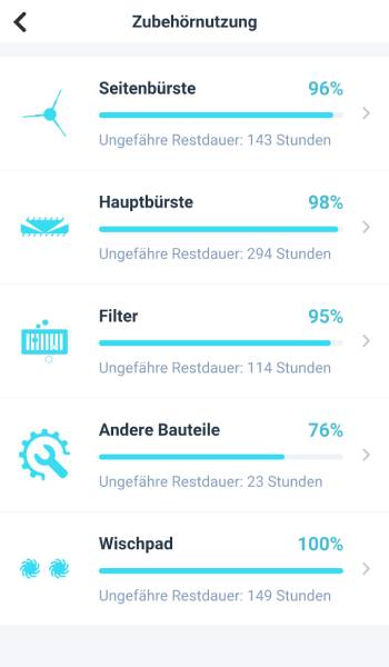 In der App sind verschiedene Einstellungen zu finden, unter anderem die individualisierbare Wasserdurchflussrate. Je nach gewünschter Reinigung oder Art des Untergrundes sollte man diese anpassen. Für empfindliche Böden, wie zum Beispiel Parkett, eignet sich die geringste Stufe am besten. Handelt es sich um intensivere Verunreinigungen oder soll auf Fliesenboden gewischt werden, empfehlen wir die höchste Stufe der Abgabemenge.